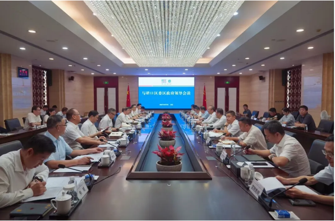 NEWS10月9日,中國能建葛洲壩集團(tuán)黨委書記、董事長(zhǎng)譚華與武漢市硚口區(qū)委書記周耕、區(qū)委副書記、區(qū)長(zhǎng)趙宏亮座談,就深化基礎(chǔ)設(shè)施建設(shè)、城市更新、生態(tài)環(huán)保等領(lǐng)域務(wù)實(shí)合作,加快推進(jìn)重點(diǎn)項(xiàng)目落地深入交流,并達(dá)成廣泛共識(shí)。公司黨委副書記、總經(jīng)理、副董事長(zhǎng)陳剛,黨委副書記、副董事長(zhǎng)胡德明參加座談。
